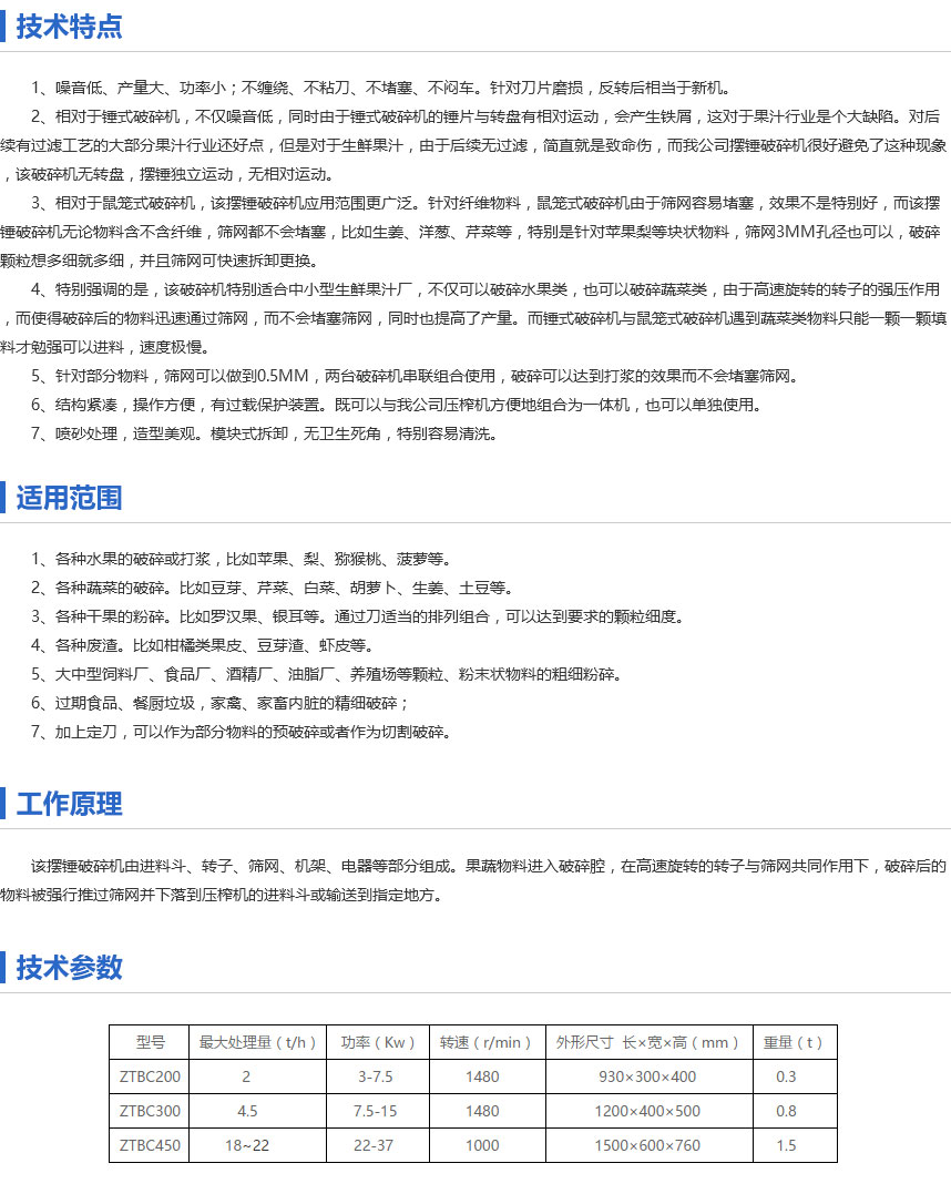 還有被廣泛使用在很多廢渣物料的破碎,方便壓榨脫水,針對果蔬的破碎,是可以媲美其他型號破碎機。如果是大塊的,大量的果蔬,強烈推薦擺錘式破碎機,比如菠蘿,甜菜,蘿卜,尾菜等等。